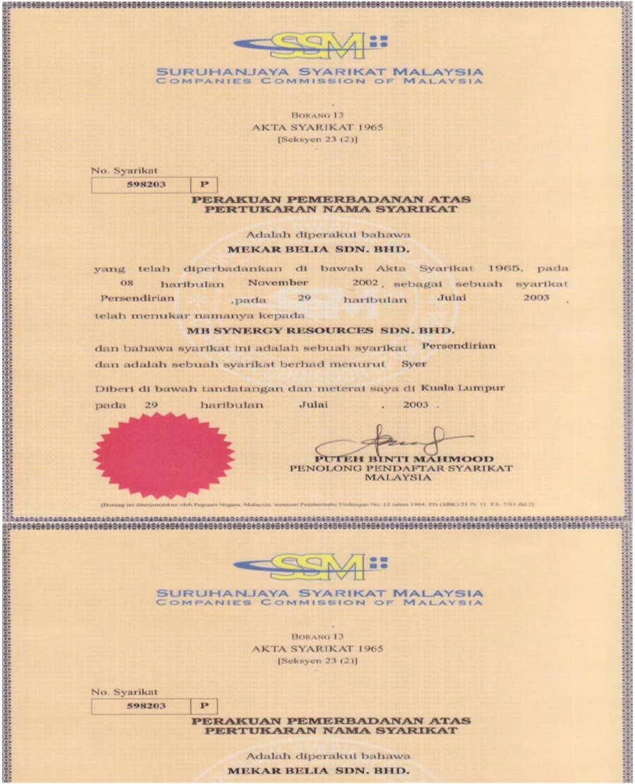 In The Field of The EngineeringMB Synergy Resources Sdn Bhd (MBSR) was incorporated on 08th November 2002, is a newly established company with 100% BUMIPUTRA equity.